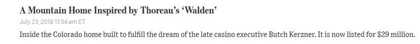 : Ah, yes. "I went to the woods because I wished to live deliberately in a $29 million mansion."