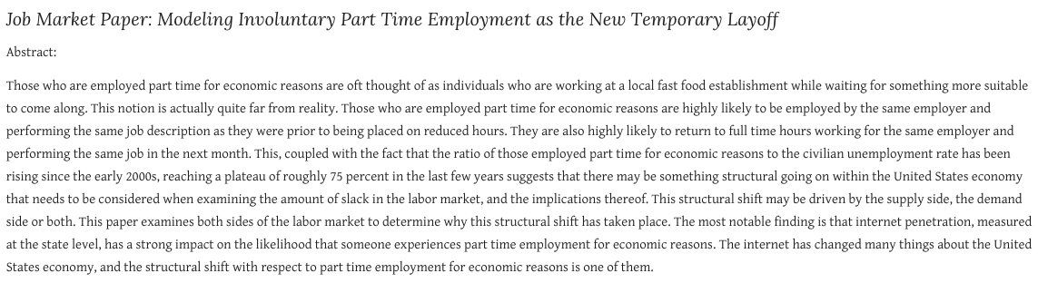 ’s new JMP on involuntary part-time employment (“employed part time for economic reasons”):
