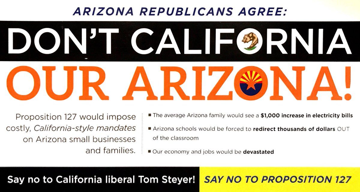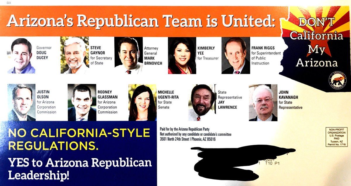 Interesting “Don’t California My Arizona” messaging in the Republican mailer I received yesterday.