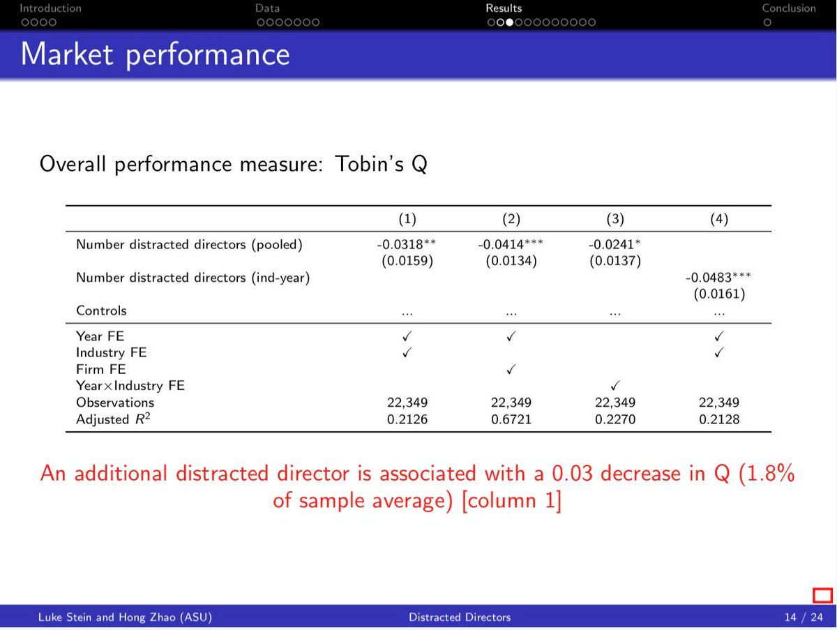 A few more examples of slides that try to describe a key coefficient/effect next to the table: