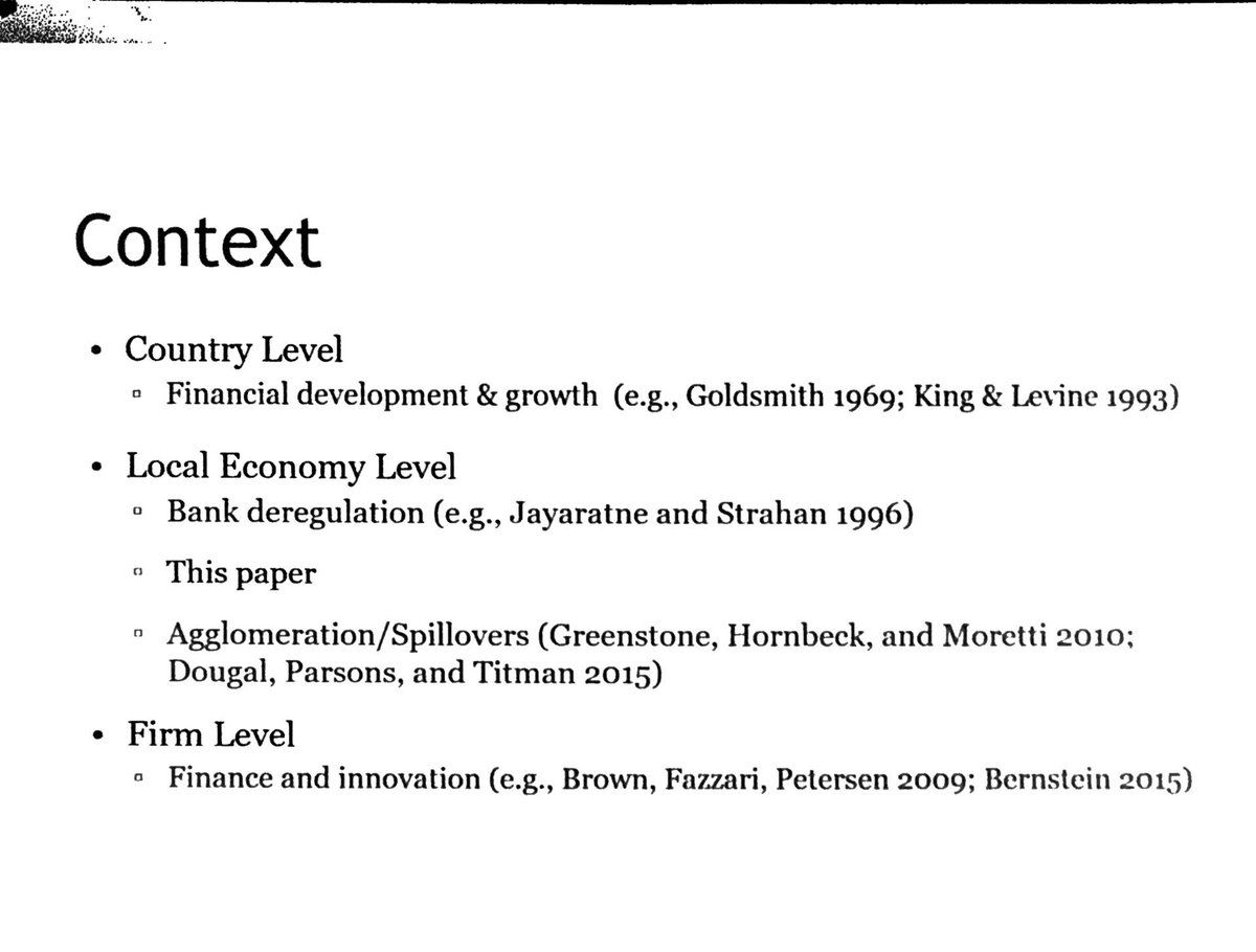 Scumpeter (1969): Finance *causes* growth Robinson (1952): Finance *follows* growth (John Adams?): Finance *harms* growth CGKP engages, specifically around public equity markets. cc: @JasonKotter #FRA2019