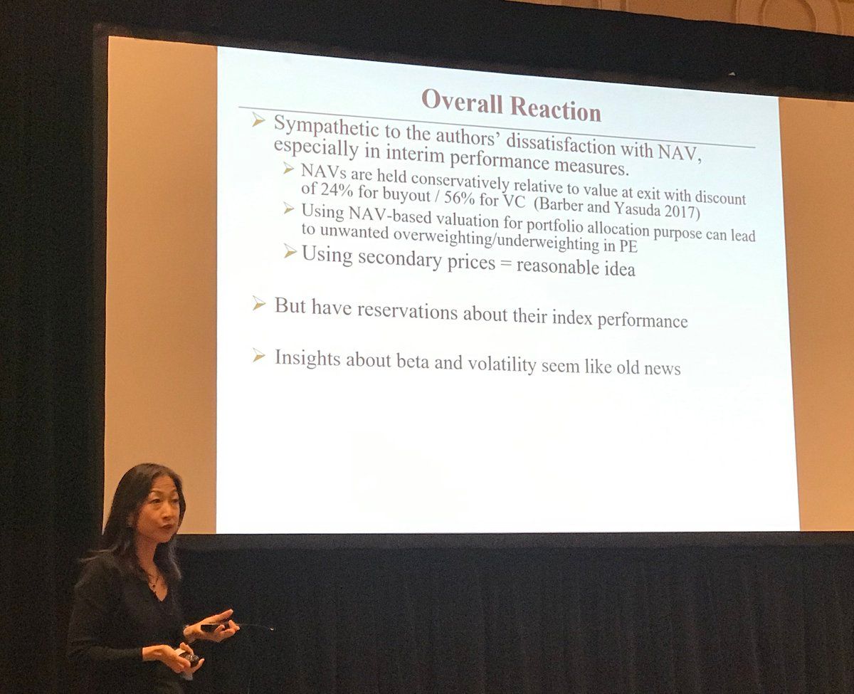 Next up: Ayako Yasuda on “Private Equity Indices Based on Secondary Market Transactions” (Boyer, Ndauld, Vorkink, Weisbach) Secondary PE part of broader phenomenon incl. - Fewer IPOs - Companies going private - MF/HF putting more money into PE #FRA2019