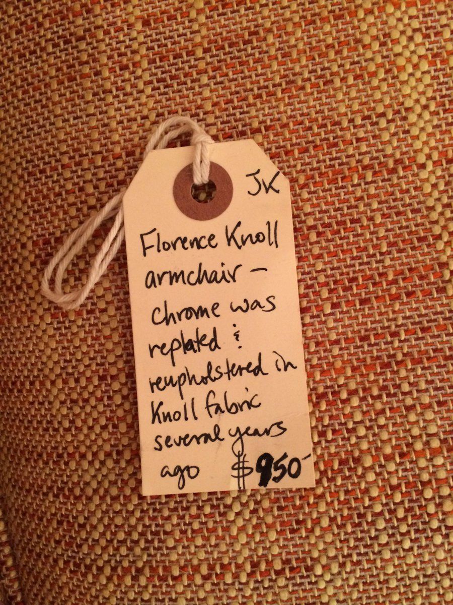 One of my regrets is not having bought a beautiful Knoll chair when I had the chance a few years ago. (Alas, upholstery pic only)
