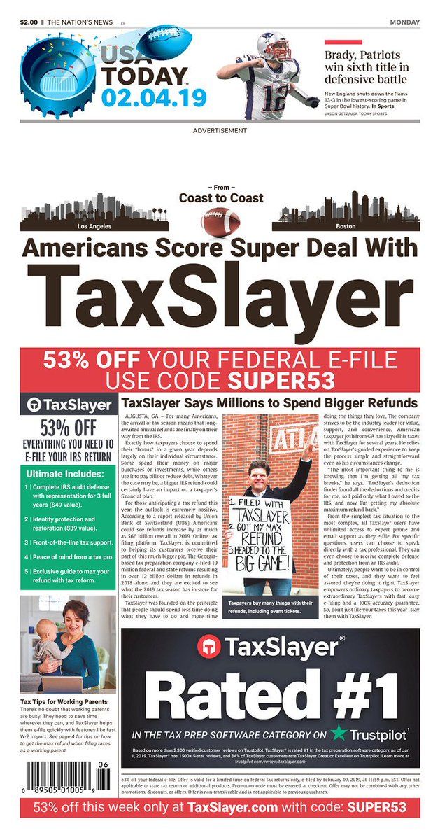 Model the political economy and media business IO of a world where the *whole* front page of USA Today is an advertisement for tax prep software.