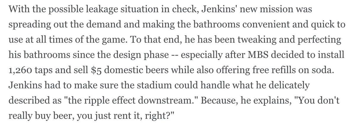 This whole article about stadium bathrooms is surprisingly interesting, but the best line is uncontested: “‘You don’t really buy beer, you just rent it, right?’” espn.com/nfl/story/_/id/25894368/inside-taboo-bizarre-revealing-world-stadium-bathrooms-super-bowl-liii-nfl-2018