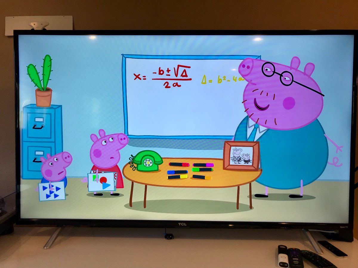 So I respect that you split out the discriminant, but Daddy Pig: they’re MY kids which means I’M THE ONE who gets to teach them the quadratic formula. #peppapig
