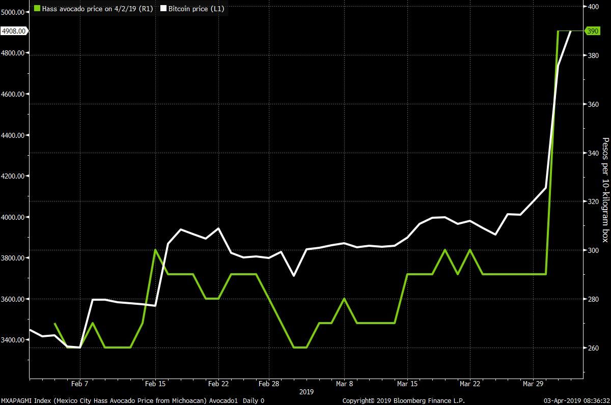 : Avocado prices are clearly tracking Bitcoin.