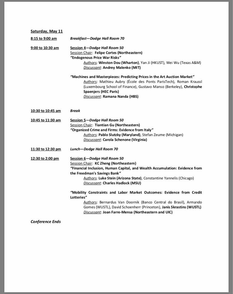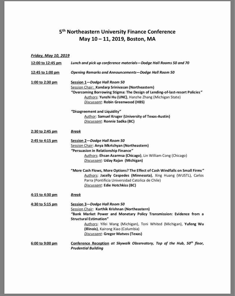 Back at #NUfin2019 for day 2 and PAPER 6: “Endogenous Price War Risks” by Winston Dou (@Wharton) with Yan Ji (@hkust) and Wei Wu (@maysbusiness). I saw this great paper in Kentucky two weeks ago but it’s deep and I’m looking forward to hearing it again. @lukestein/1121768115229143040