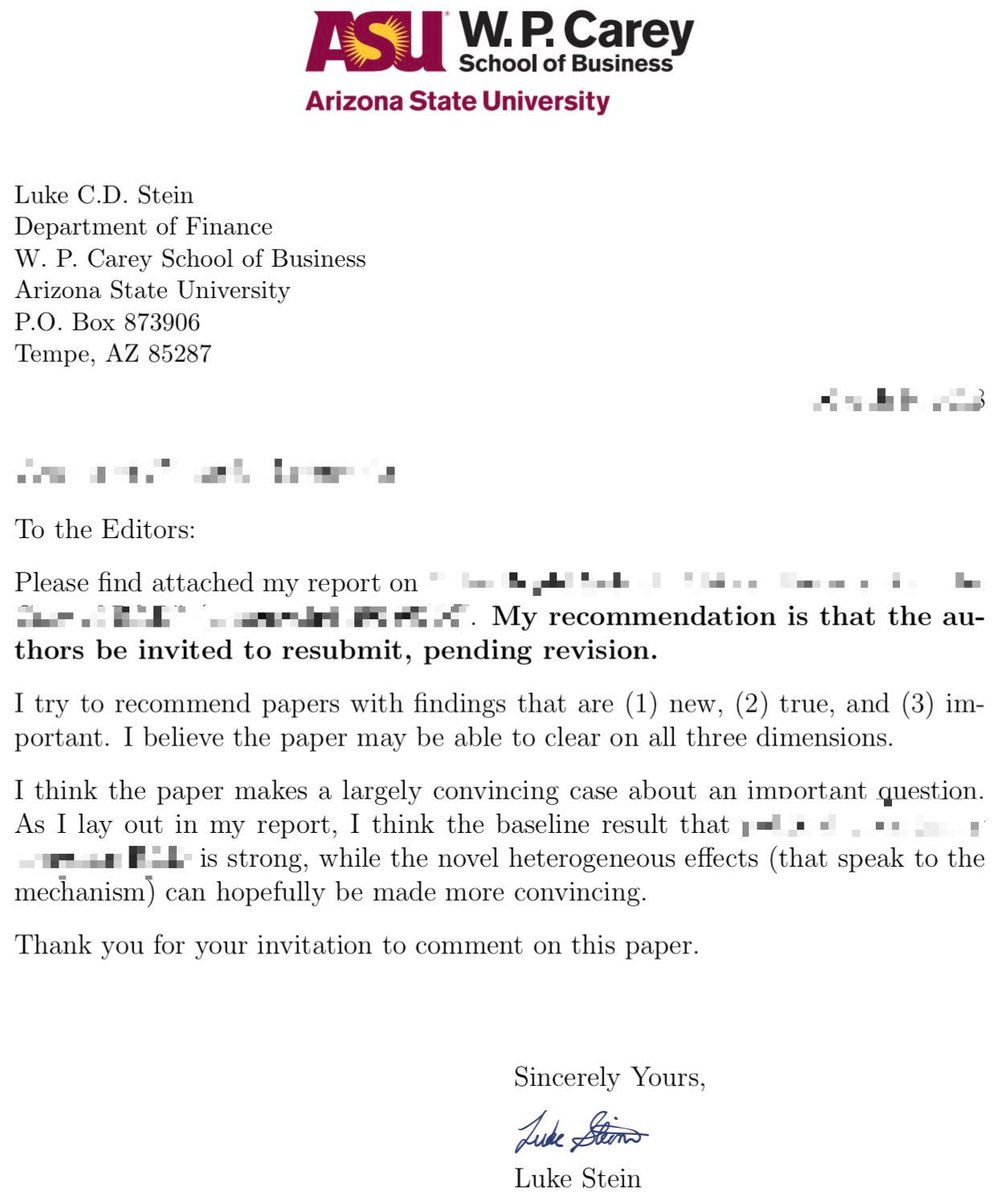 @FabianNeuner Also, here’s Berk et al JEP 2017 (obvs norms differ across fields) which I like to give students, along w Ferson and Matausaka “Tips on Writing a Referee’s Report”