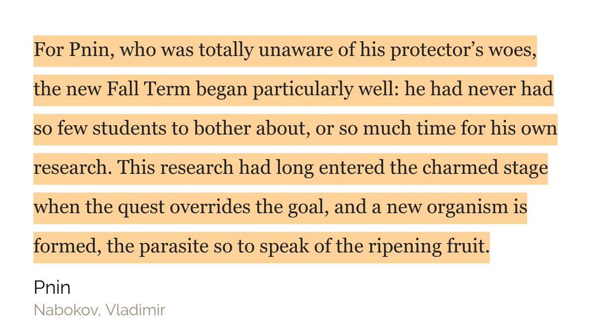 “The new Fall Term began particularly well: he had never had so few students to bother about, or so much time for his own research.” — Vladimir Nabokov