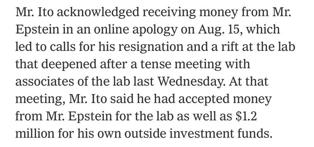 @dbergstresser Also, the just-now Times’ breaking piece mentioning that Ito is on the Times’ board of directors… in paragraph 14. (“The New York Times Company did not comment on Saturday.”) @xeni/1170352857952002048