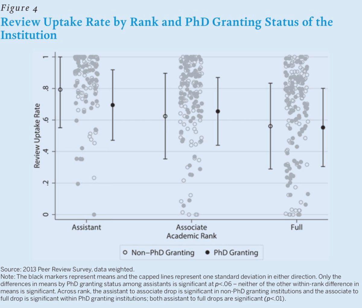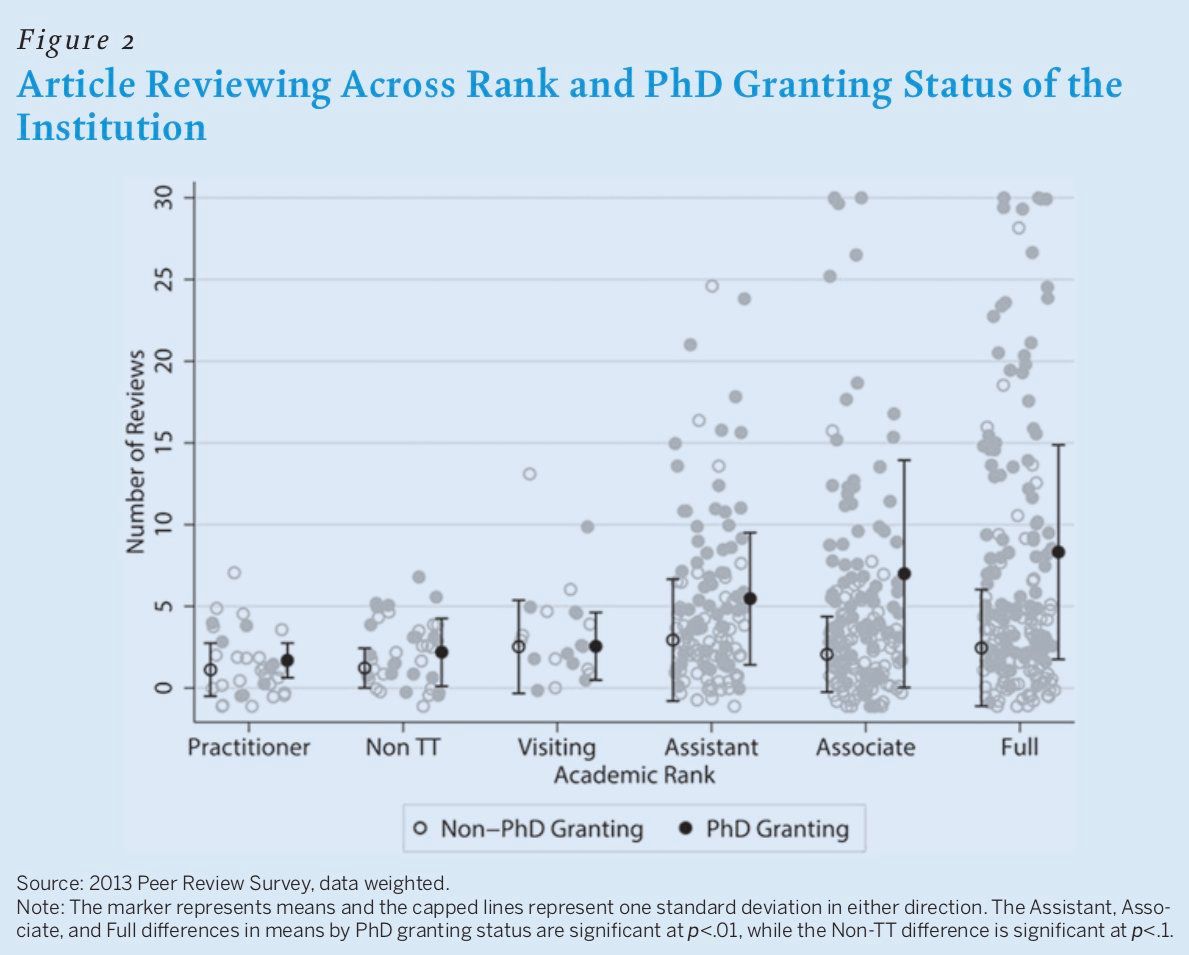 Distributional stats on number of referee reports written and acceptance rates (in political science)!