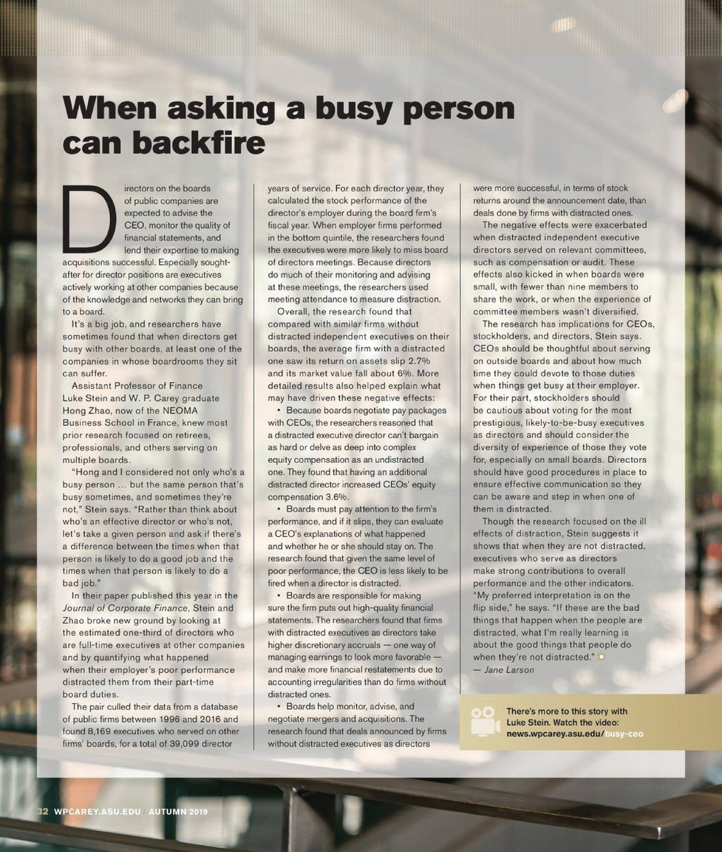 @WPCareySchool And my thread about the paper (Stein, L. and H. Zhao, “Independent executive directors: How distraction affects their advisory and monitoring roles,” Journal of Corporate Finance, June 2019) @lukestein/1098715089035657216 Journal: doi.org/10.1016/j.jcorpfin.2019.02.003 PDF: public.asu.edu/~lstein2/research/stein-zhao-distracteddirectors.pdf