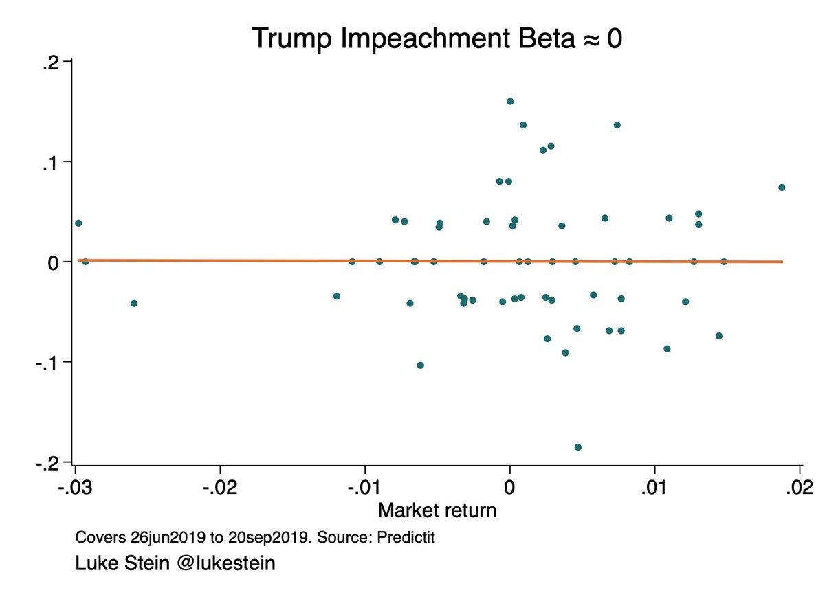 Today seems like as good a day as any to note that a very quick-and-dirty estimate of the CAPM beta on Trump’s being impeached is [statistically indistinguishable from]… ZERO