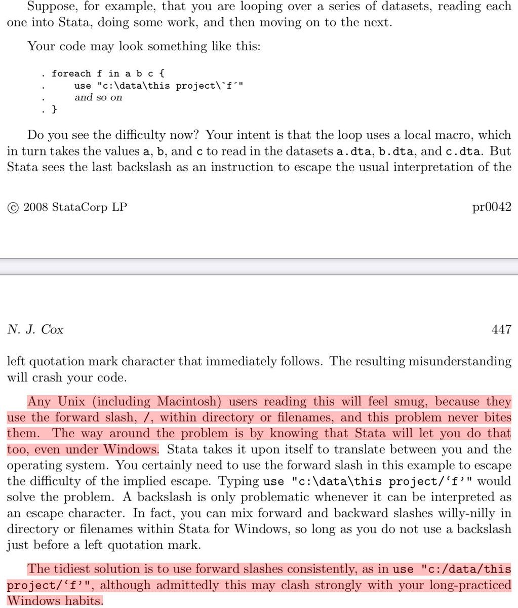 The trick is just to convince all your Windows-loving coauthors to use Mac/Unix-style directory syntax (or surreptitiously change their code)!