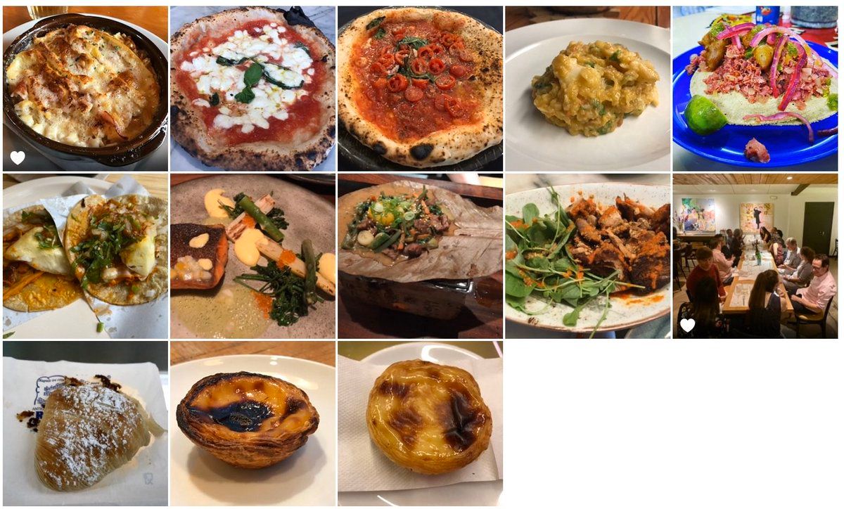 3/4 Best meals w/o single knockout dish • Sorrel (SF) • Yopparai (NYC) • Taberna Sal Grosso (Lisbon) • Tuck Shop (Phoenix) 4/4 Best pastries • Attanasio (Naples): sfogliatelle • Monteigaria (Lisbon): pastéis de nata • Alcoa (ibid) • Fireman Derek’s (Miami): key lime pie