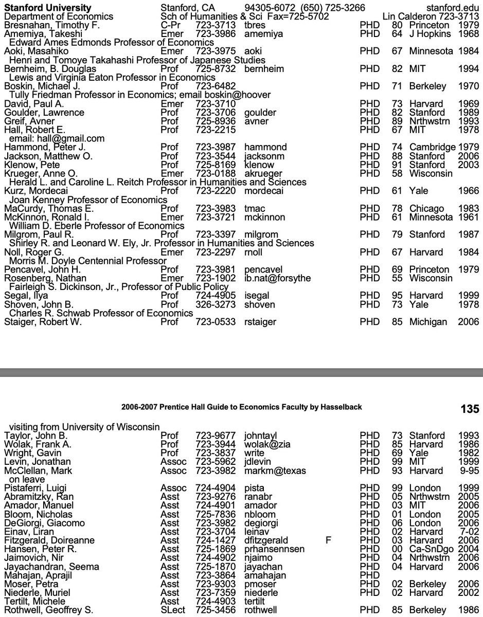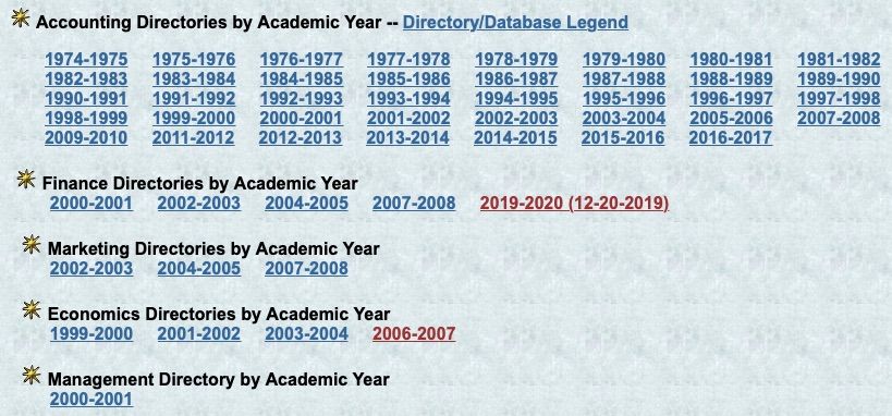 🚨 Data source alert 🚨: Jim Hasselback’s directories of econ/business departments/faculty with e.g., degrees offered, job titles, PhD institution, and PhD year. Accounting nearly annual since 1974; Finance newly updated; Econ alas last updated 2007. jrhasselback.com/FacDir.html