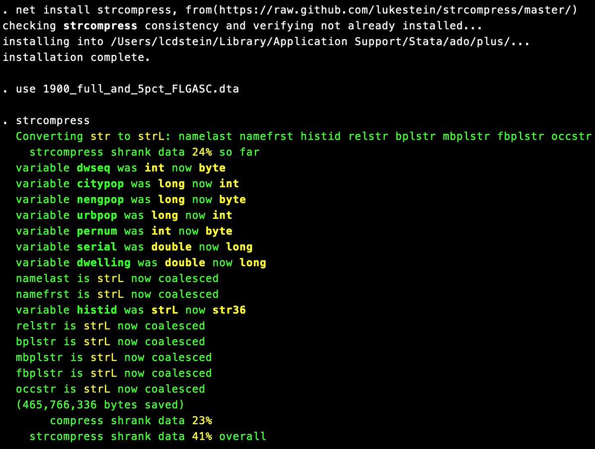 Converting Census files to use @Stata’s long string variable type just saved me GBs of storage space. Lossless and painless. It’s so easy, I made you a Stata command! github.com/lukestein/strcompress @lukestein/1222263793876492290