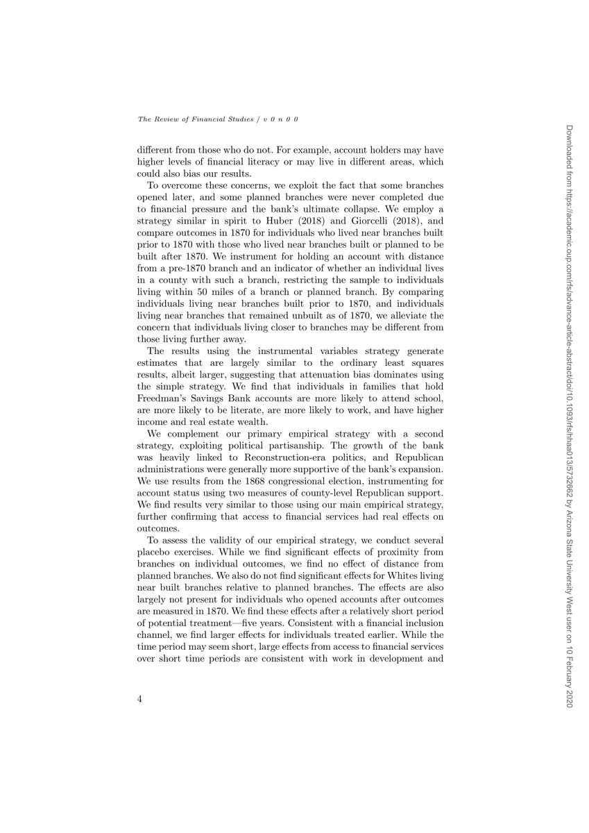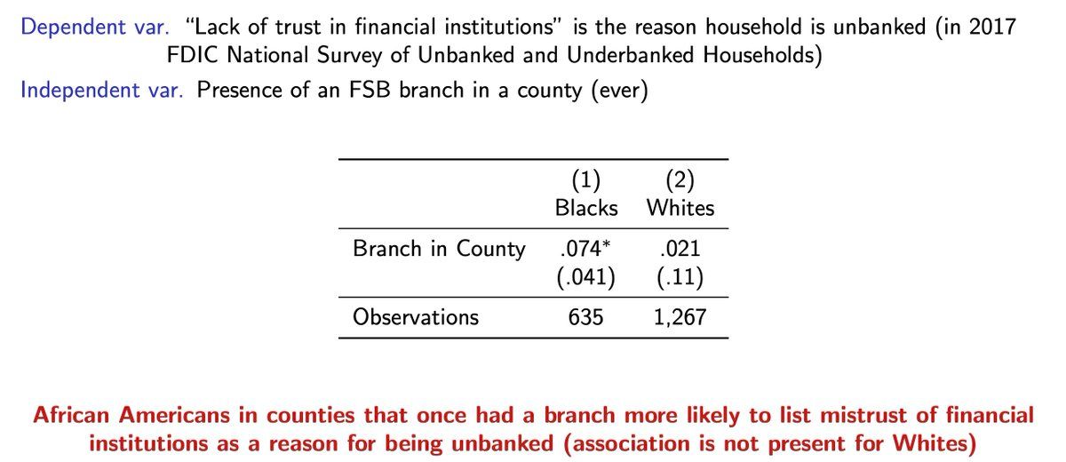 There’s a lot more in the paper, including an alternative instrumentation strategy that relies on variation in Republicans’ political strength as a determinant of branch location. 6/ @Aliceyjun/1226926834287247360