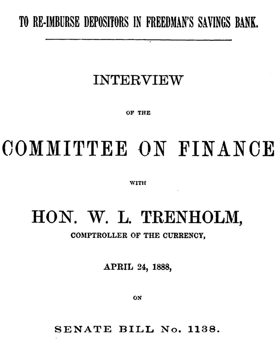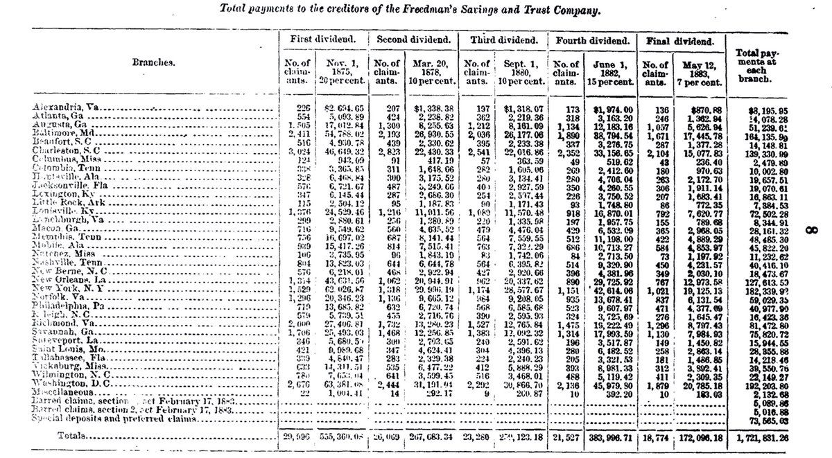 The FSB opened 34 branches between 1865–70 to receive deposits “by or in behalf of persons heretofore held in slavery in the US, or their descendants.” By some measures it was the largest bank in the country, serving perhaps 1 in 8 African Americans. 2/ @smithsonianarch/828626813786193920