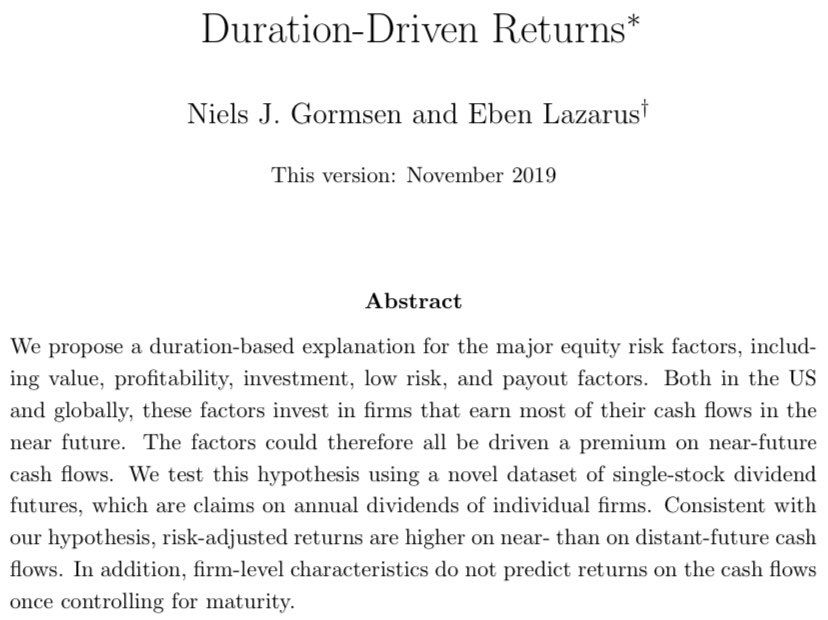 [10 cont] Last up is @sophieshive (the second great discussion I’ve seen her give in the last few months @lukestein/1203448614434947072 ), incl. - Connecting factor and dividend-strip evidence - Discussing microstructure of dividend strip, which may really matter!