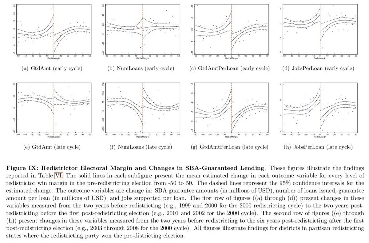 [5] Local Politics and Small Business Lending (@sahilraina and Sheng-Jun Xu): Electorally vulnerable incumbents’ districts 1. Get more SBA lending -Bigger loans, not more -Through banks more sensitive to local politics 2. SR ↑ employment and wages, but LR ↓ establisments