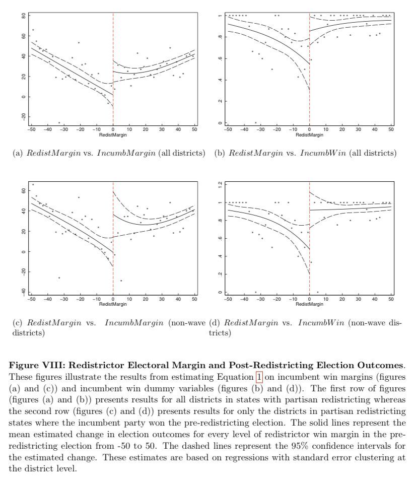 [5 cont] Awesome RDD and diff-in-RDD stragegy using close wins in *previous* elections for partisan-redistrcting and nonpartisan-redistricting states. There is SO much. Check the paper here ssrn.com/abstract=3396699 (and @sahilraina and Sheng-Jun’s other papers, too).