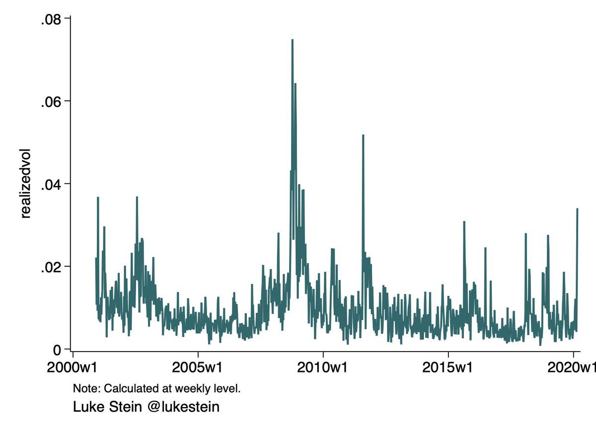 @bennpeifert 100%. Your graph (which I realize was about the long-term) just made me curious about the data, and I was struck—again, as a very amateur observer—by the degree to which the vol spike actually looks big. Like this was the most volatile week in years?