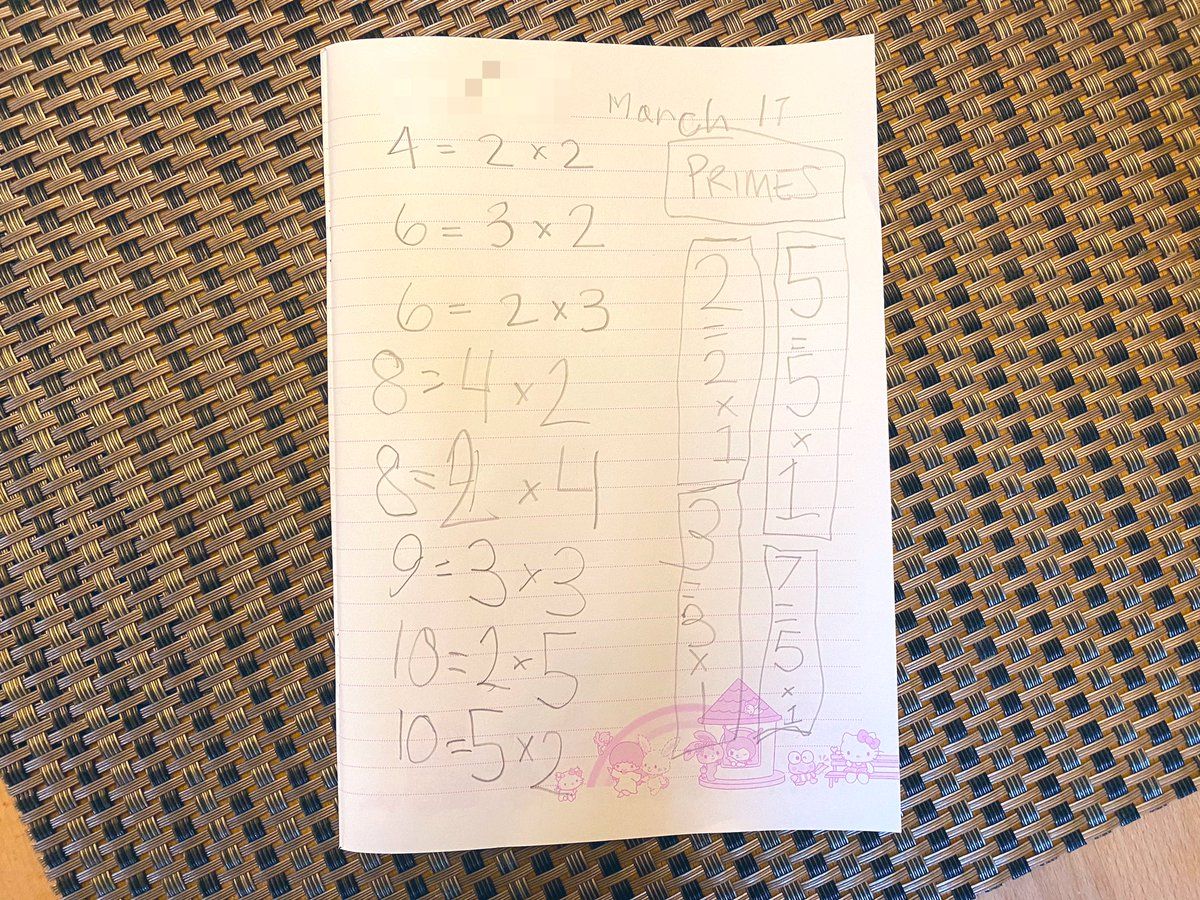 Homeschool day 2. Coronavirus means having some difficult conversations, but somehow managed to postpone the dreaded “why isn’t 1 prime?” talk for at least another day.
