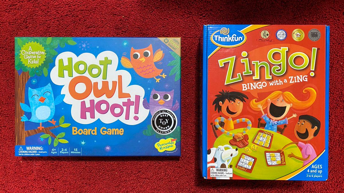 I’ve got a 3- and a 6-year old. We have lots of toys and games and art supplies (recognize our good fortune in this), but two have been particular lifesavers these past weeks: Hoot Owl Hoot amzn.to/2xwc6LK Zingo amzn.to/3bBpQDS Both actual fun for all four of us