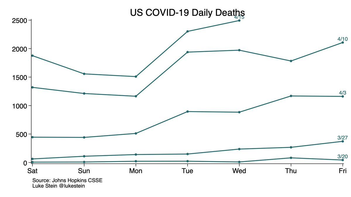 , day-of-the-week trends for UK Coronavirus deaths, updated and squint-free (And US update, for comparison. Standard data quality caveats apply.)