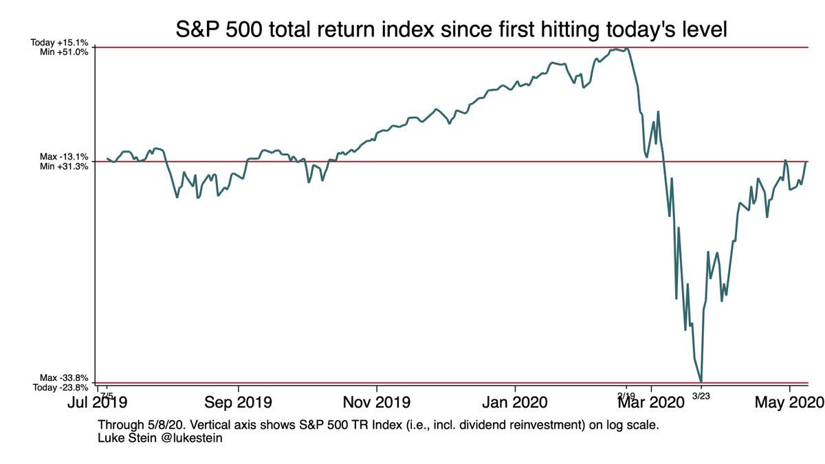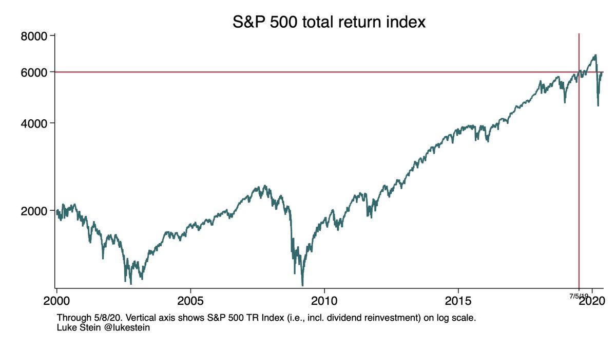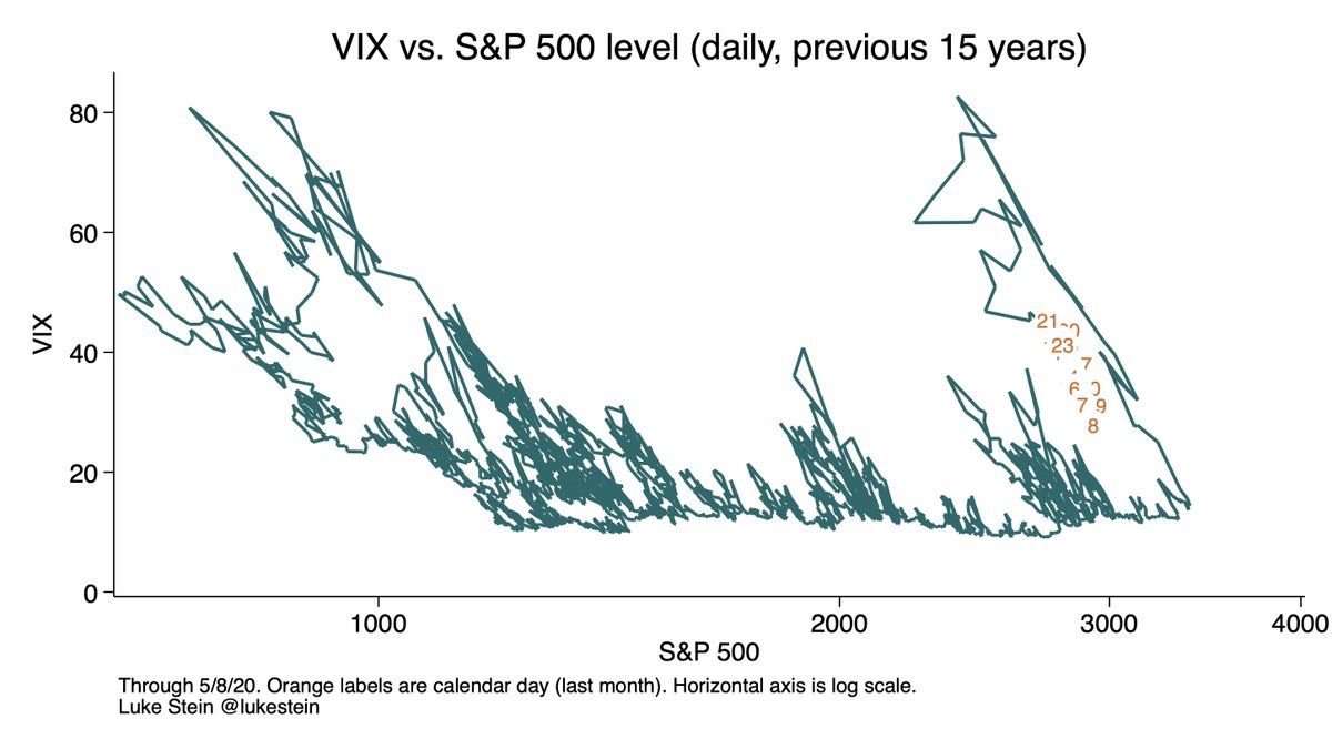VIX closed today below 30 for the first time since Feb 26. A buy-and-hold S&P 500 investor is down 5.6% since then.