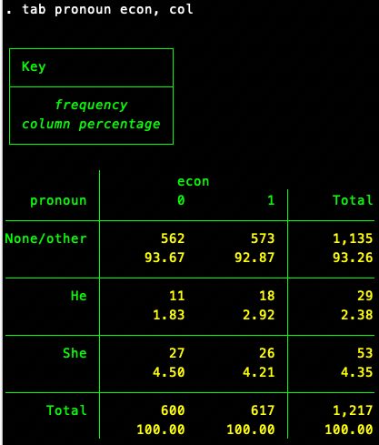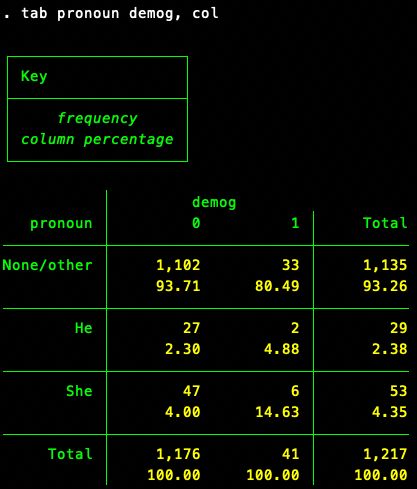 @estebanjq3 I was just set up to look at a given account's followers/followings (max 3000 of either, given Twitter API), so couldn't make statements about a discipline as a whole. But here are your followers—more pronouny than mine!—by whether profile includes "econ" or "demog."