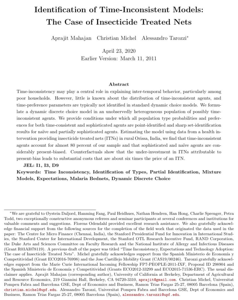 Very cool new* NBER WP today from my first-year metrics prof, the wonderful @aprajitmahajan (and coauthors). I love seeing how his work uses development questions to push econometric innovation (and the latter to help answer the former).