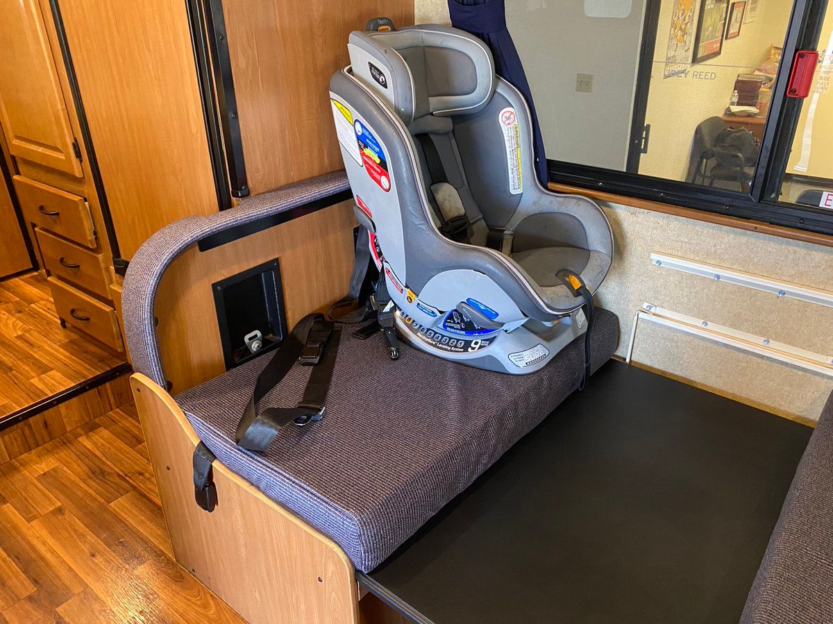 RVs have two front-facing seats with lap belts and rear tether attachment points that appear@to be structurally mounted