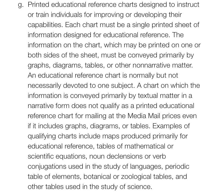 Shipping certain things USPS Media Mail is about half the price of sending them on a moving truck from AZ to MA, so thank you to… whoever’s lobbying on behalf of figures, diagrams, and tables pe.usps.com/text/dmm300/173.htm#ep1113500