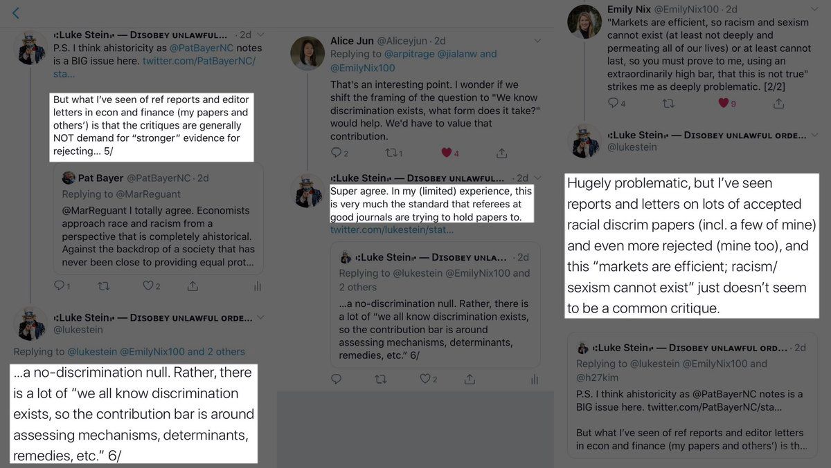 @gbenga_ajilore @EmilyNix100 @arpitrage And ref assignemnts are highly non-random; several things (incl. my own work’s conclusions consistent with ∃ of discrim) mean I may be disproportintely exposed to other referees who know that OF COURSE discrimination is endemic, so focus on mechanisms, determinants, remedies.