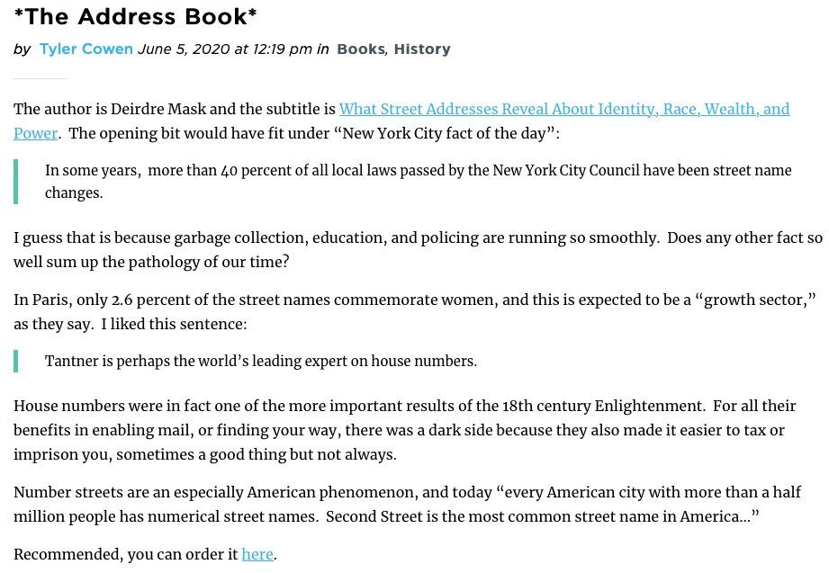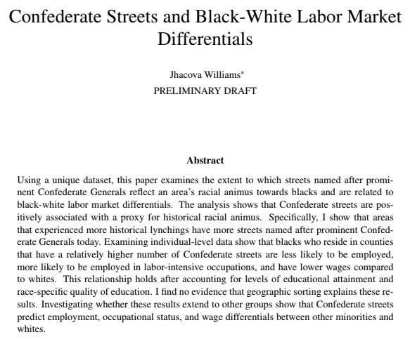 .@Deirdre_Mask’s new book looks interesting [h/t @tylercowen] On whether “any other fact so well sum[s] up the pathology of our time,” 👀 @jhacova’s evidence on the high prevalence of confed. general street names, and correlation with lynching and B–W labor market differentials @MargRev/1269026594040901632