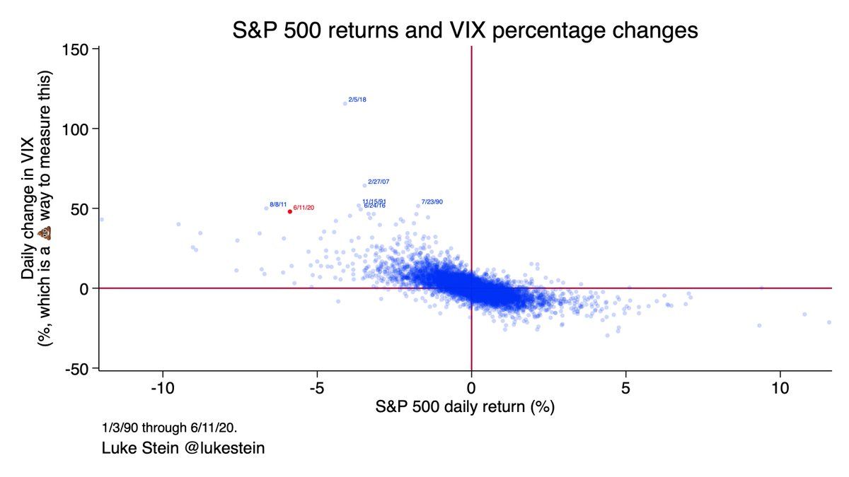Today saw the 8th-biggest daily VIX spike ever. (And the 14th biggest S&P loss since the VIX was introduced in 1990). @lukestein/1236144666514345986