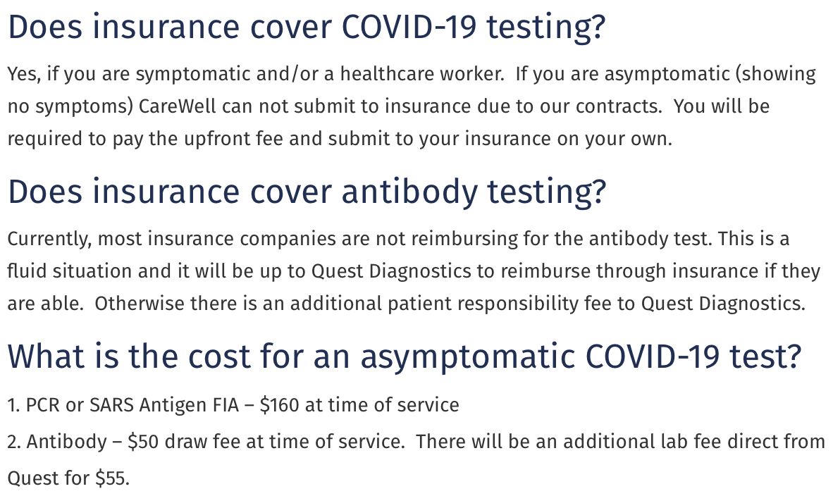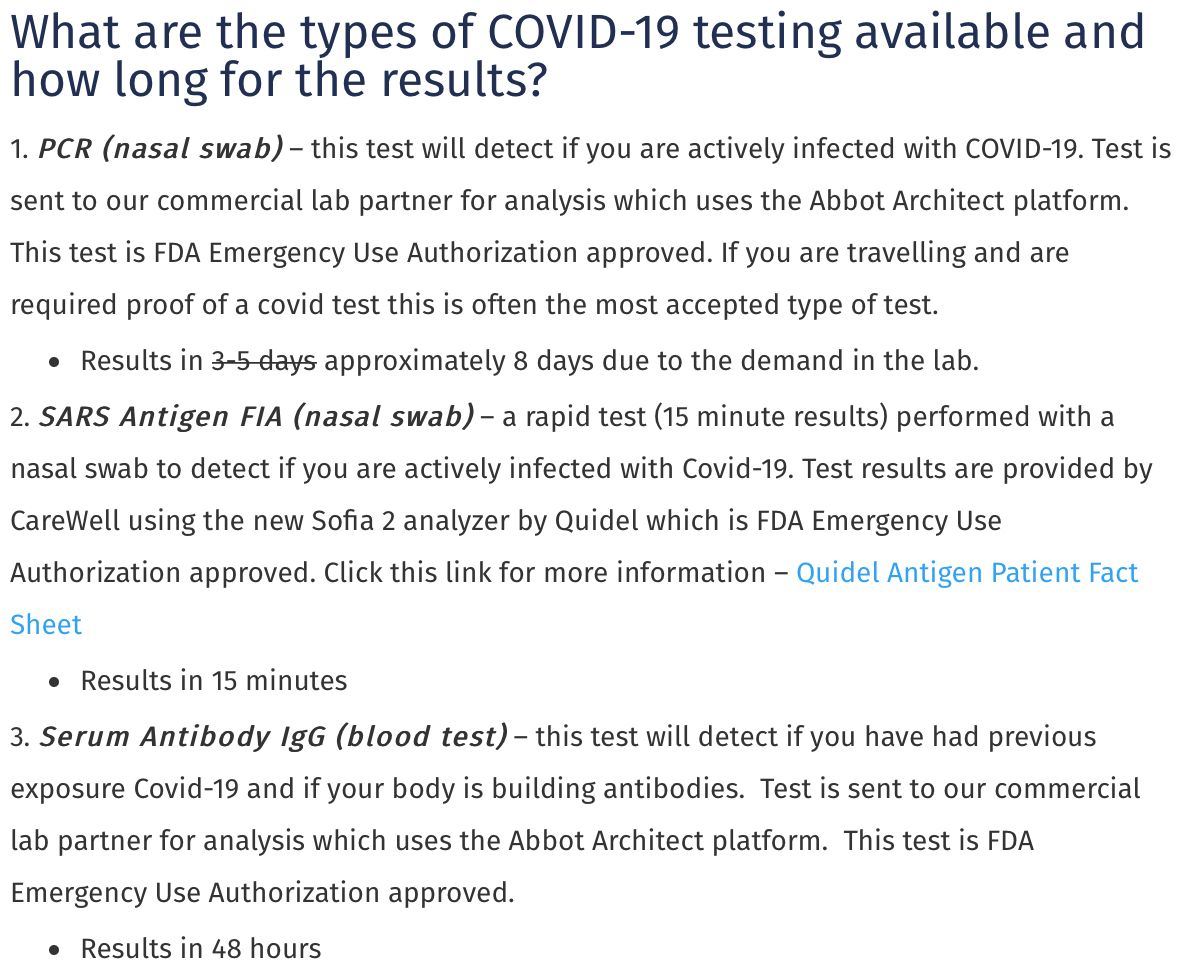 PCR or antigen testing *should* be covered by our health insurance, but we pay up front and then have to file ourselves for reimbursement. I fear there may be a fax machine in my future. 5/ carewellurgentcare.com/covid-19-response-at-carewell/