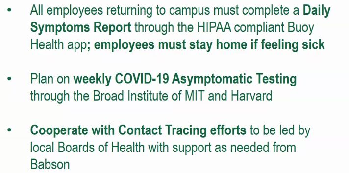 plan is for weekly COVID testing (with stated expectation that frequency may increase or decrease as conditions evolve) for everyone physically on campus cc: