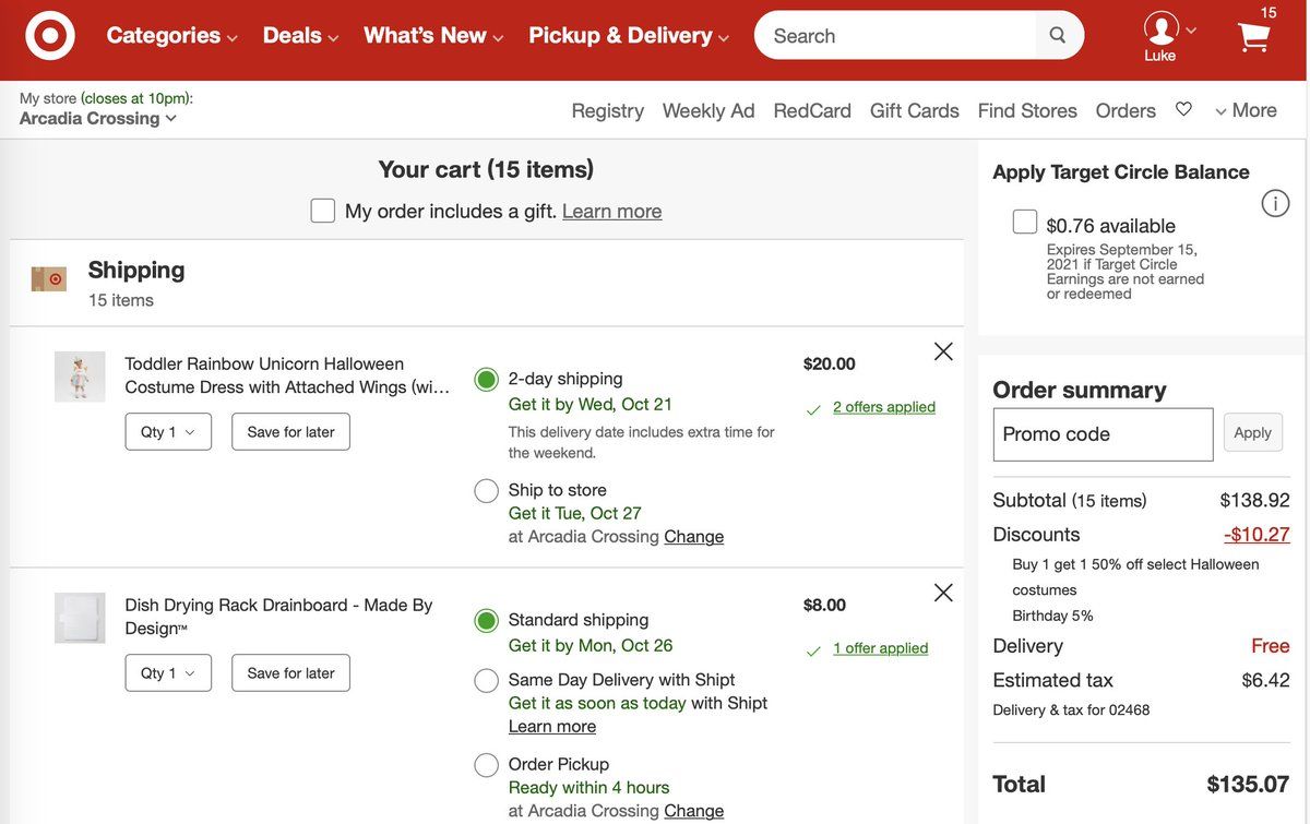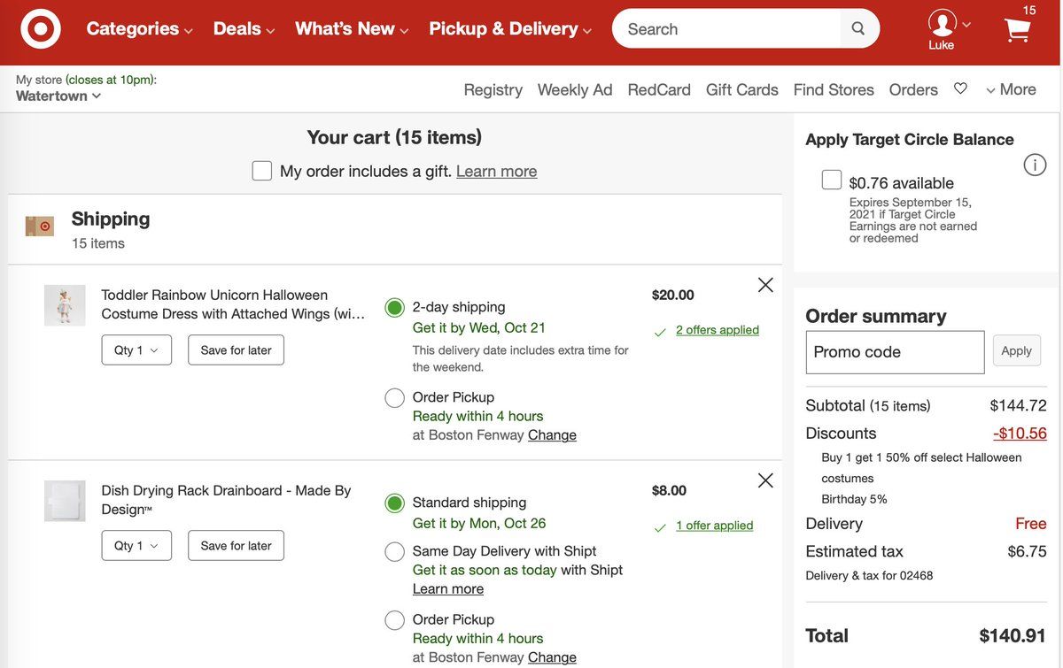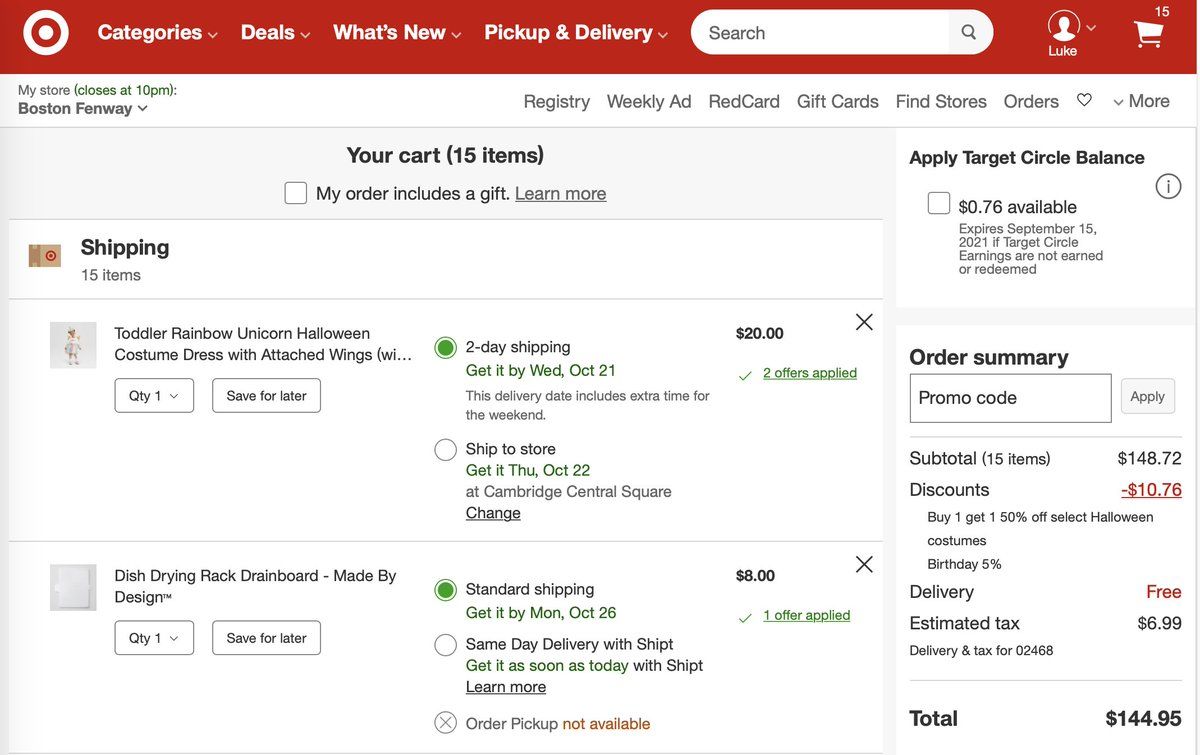 , If I’m ordering things 𝘀𝗵𝗶𝗽𝗽𝗲𝗱 to my house, you shouldn’t charge me a different price based on what store I choose as my “home” store. I know you want to price discriminate, but be cool. Love, Luke