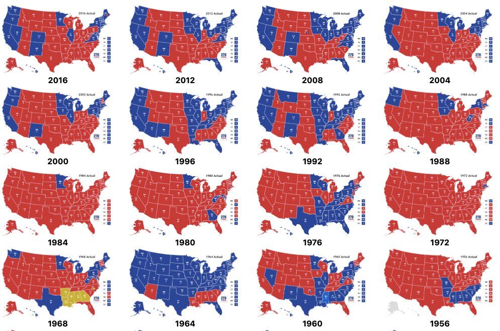 It looks like we will now be 20 years since Republicans have won a disconnected set of (“lower 48”) states (Dems were last connected in 1956 270towin.com/historical-presidential-elections/ ) #electiontopology