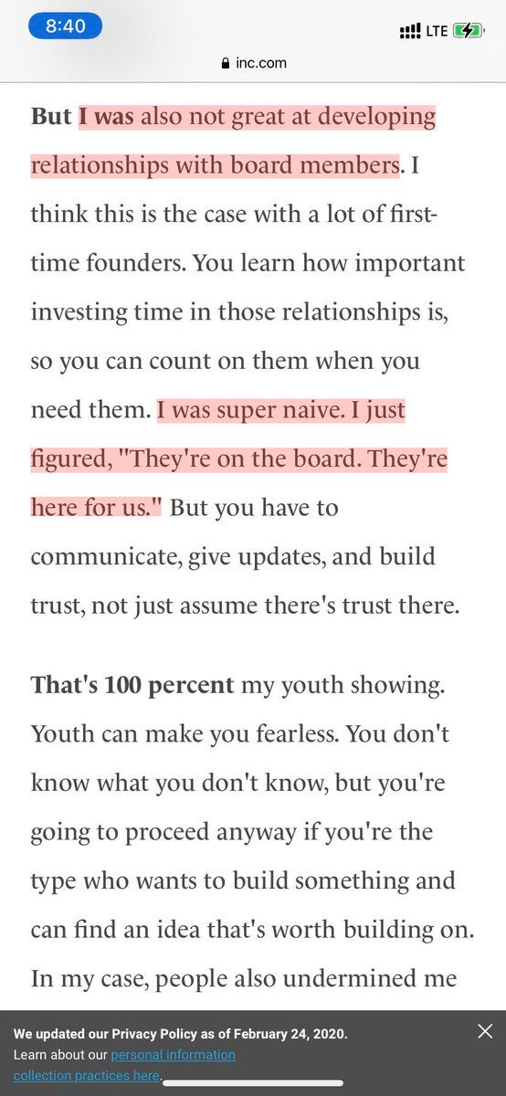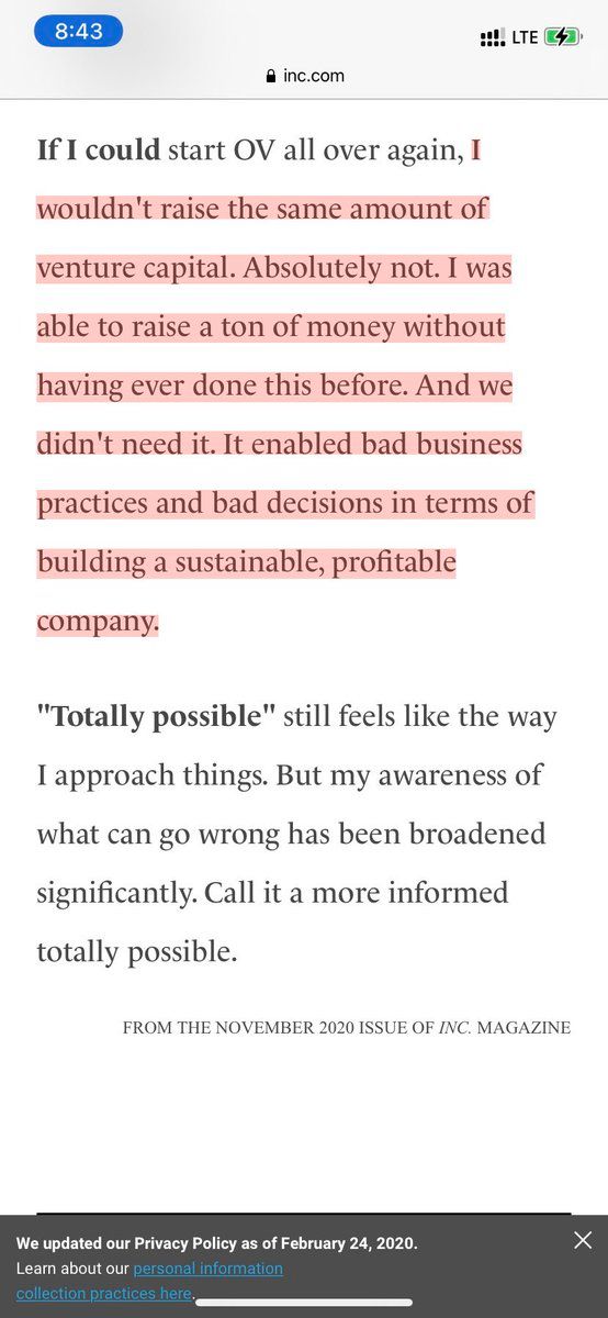 Interesting interview with the founder of Outdoor Voices offering some stark comments on issues in corporate governance and entrepreneurial finance inc.com/magazine/202011/tom-foster/tyler-haney-outdoor-voices-ceo-founder-startup-comeback.html