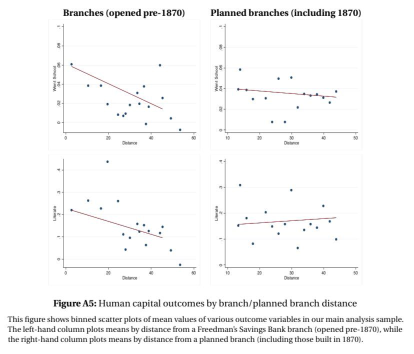 @causalinf @RevOfFinStudies Thanks, Scott! We decided to mainly focus on the effect of having an *account* in the household (endogenous, plus subject to massive measurement error) rather than the effect of simply being proximate to a bank. The former seemed to benefit from the IV implementation…