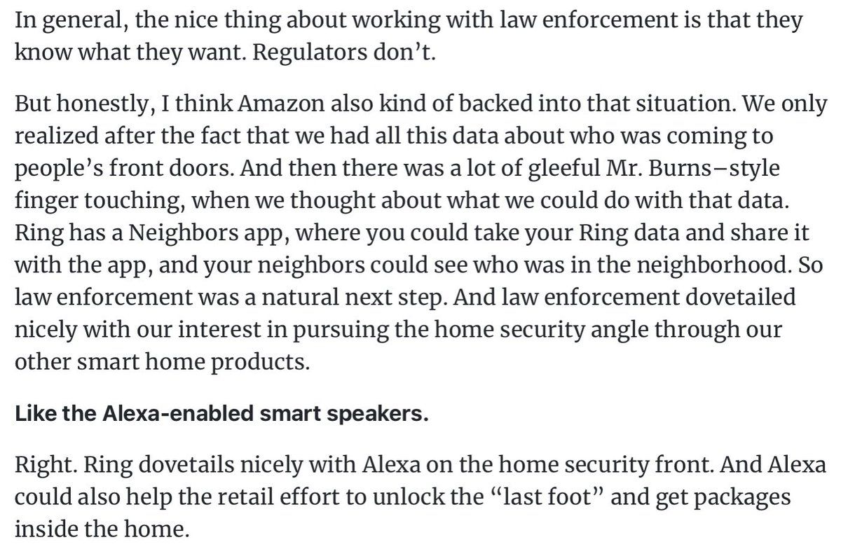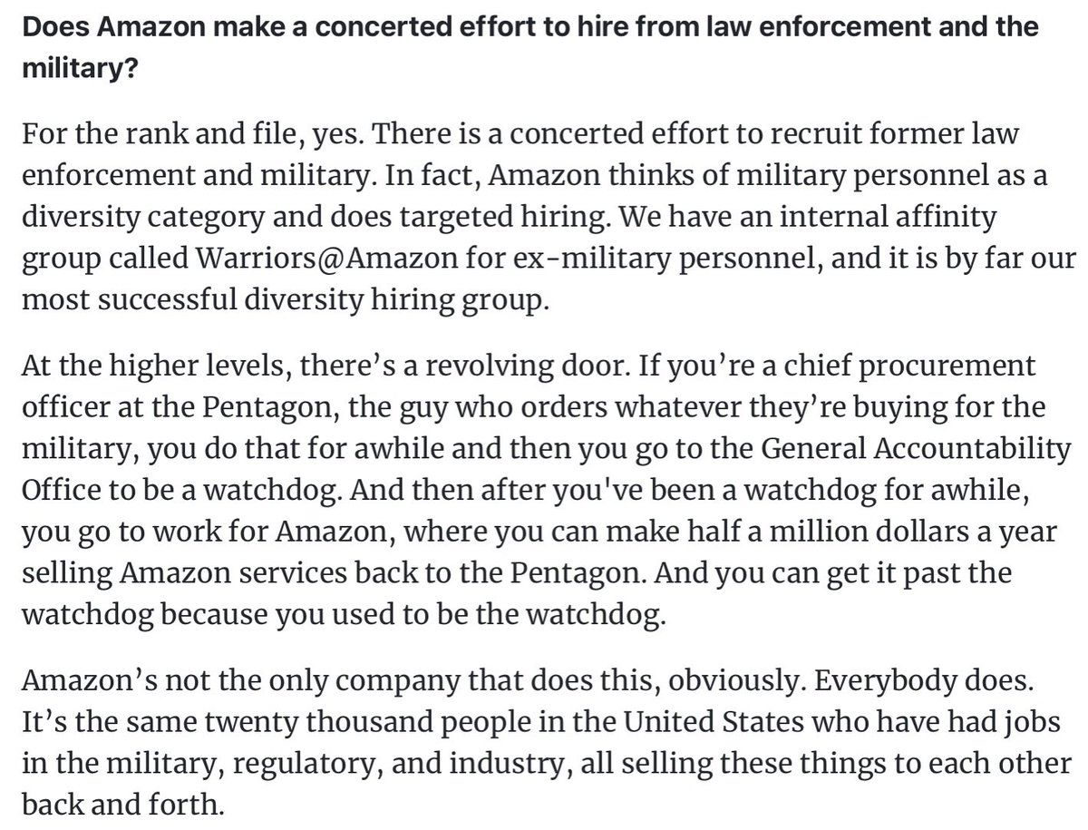 And here are two more bits about Amazon’s work with/hiring from law enforcement