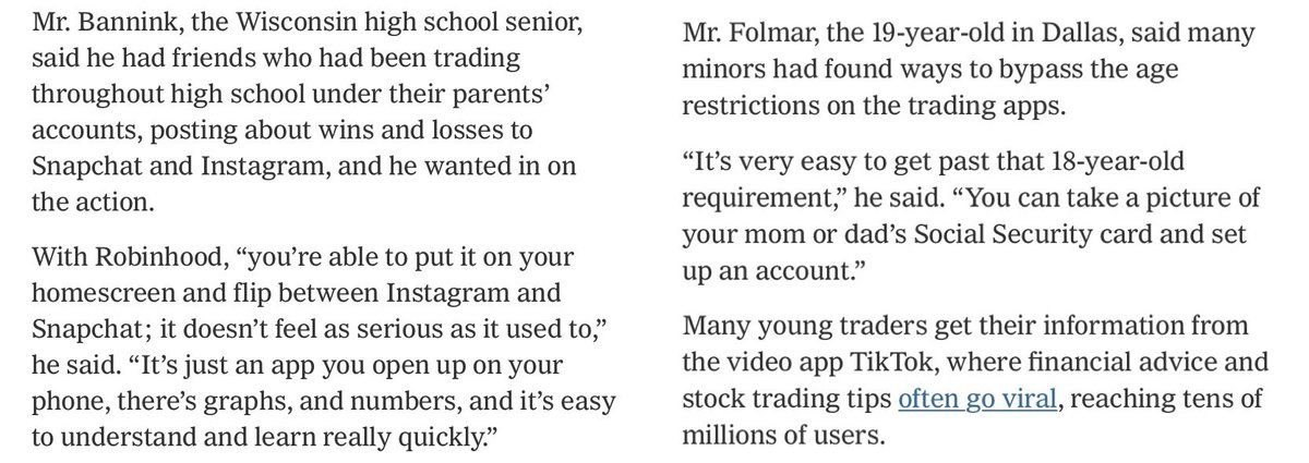 “‘There’s 𝗮 𝗹𝗼𝘁 𝗼𝗳 𝘀𝘁𝘂𝗳𝗳 𝘁𝗵𝗮𝘁 𝘁𝗵𝗲 𝗼𝗹𝗱𝗲𝗿 𝗴𝗲𝗻𝗲𝗿𝗮𝘁𝗶𝗼𝗻 𝗱𝗼𝗲𝘀𝗻’𝘁 𝗿𝗲𝗮𝗹𝗶𝘇𝗲 𝗲𝘃𝗲𝗻 𝗲𝘅𝗶𝘀𝘁𝘀. We have different ways of making money that they don’t understand.’” nytimes.com/2021/01/29/technology/stock-traders-reddit-tiktok-youtube.html