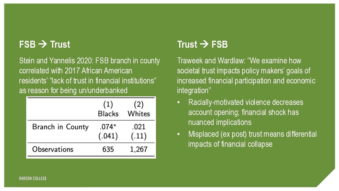 Always fun to discuss a good paper! The FSB was big and impactful. Constantine and I [RFS] and Xuanyu (Iris) Fu [UCLA JMP] have looked at effects of the bank, incl. 𝙤𝙣 trust. VT and @malcolmwardlaw look at effects 𝙤𝙛 trust (among many other things) 1/4 @malcolmwardlaw/1397668157054242820