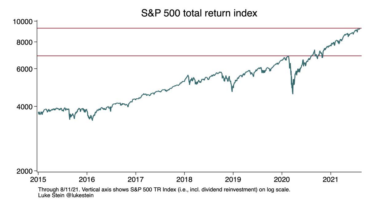 I still think it’s weird that a year ago today, equities returned to their pre-pandemic peak. Since then it’s another +35%. (Cf Case-Shiller home price index up ~20% since pandemic started, though only through May.) @lukestein/1293735033547698176
