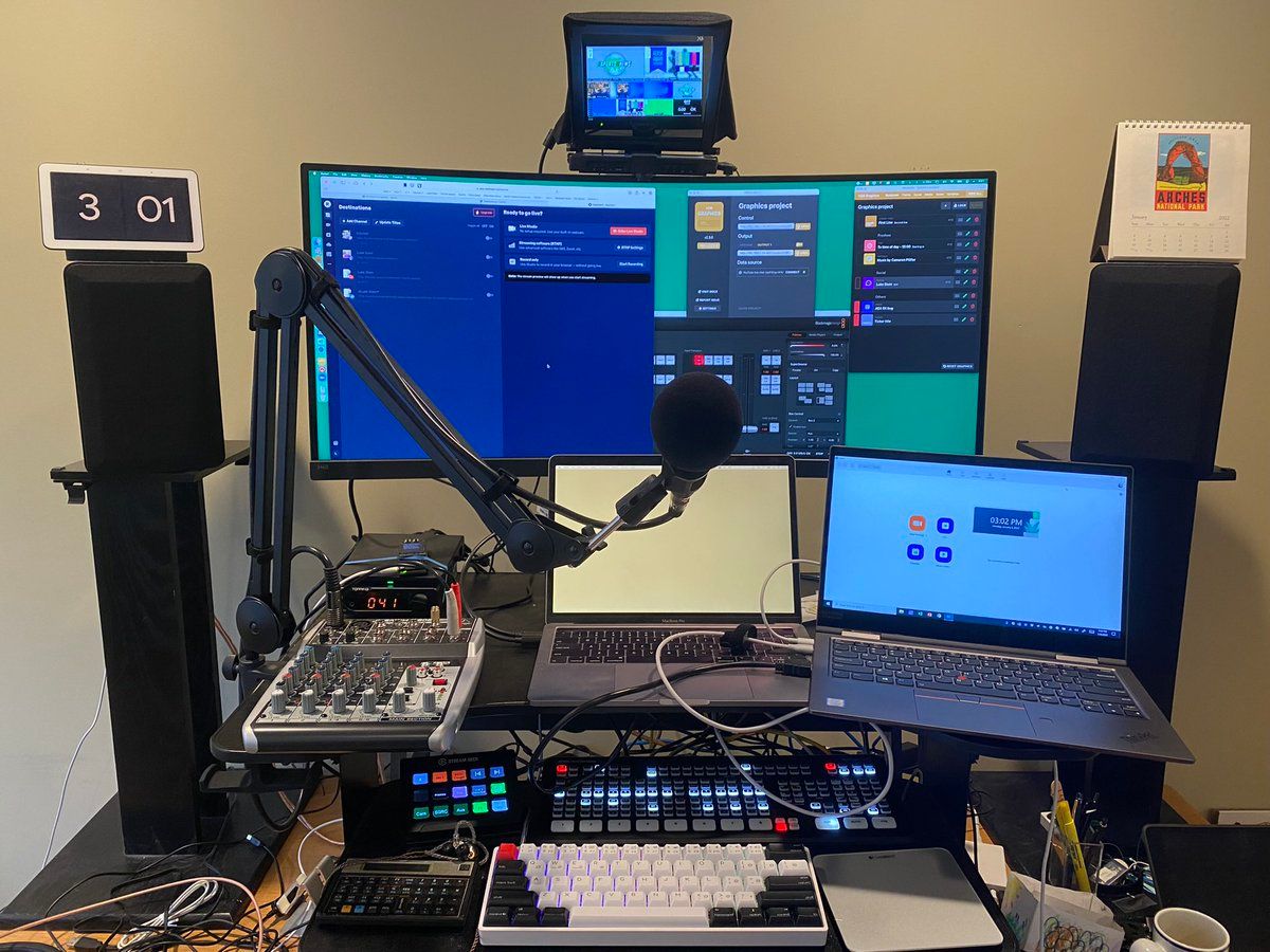 I ran the show through a @Blackmagic_News ATEM Mini Extreme amzn.to/3mW47P8 A few years ago, this stream wouldn’t have been possible for less than many thousands of dollars Basically this mixes various (audio and video) sources and streams directly in hardware (no OBS)